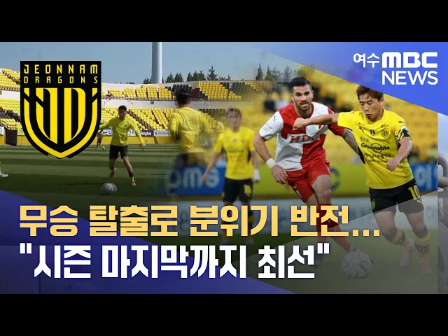 ◀ANC▶ 지난 넉 달 동안 무승의 늪에 빠졌던 전남드래곤즈가 최근 분위기 전환에 성공했습니다. 비록 상위권 진입은 무산됐지만, 시즌 마지막까지 보다 나은 경기력을 보여주겠다는 각오를 밝혔습니다. 문형철 기자입니다. ◀VCR▶ 전남의 용병 발로텔리가 넘겨준 공을 박인혁이 침착하게 골로 연결합니다. 전반 9분을 ...