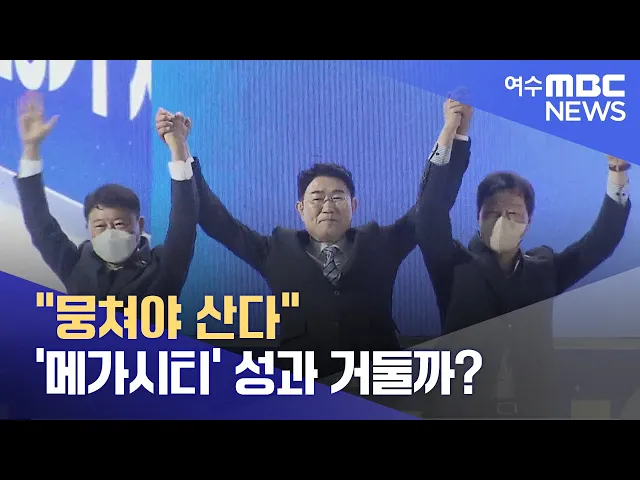 ◀ANC▶ 수도권과의 불균형을 해소하고 지방소멸에 대응하는 방법 가운데 하나로 행정 통합이나 도시 간 연대가 거론되고 있는데요. 전남 동부권에서도 민선 8기 출범을 계기로 여수와 순천, 광양 등을 아우르는 '메가시티'가 주요 의제로 다뤄질 전망입니다. 문형철 기자입니다. ◀VCR▶ 지방선거를 계기로 다시 수면 위...