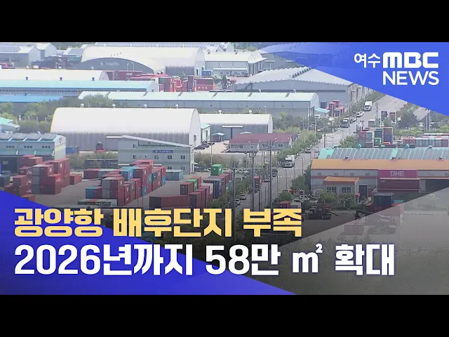 ◀ANC▶ 여수광양항만공사가 부족한 배후단지 확충에 속도를 내고 있습니다. 최근 기존 동˙서측 배후단지 유휴부지를 용도 변경을 통해 분양까지 마친데 이어 새로운 배후부지의 분양과 조성에도 적극 나서고 있습니다. 김주희 기자가 보도합니다. ◀END▶ ◀VCR▶ 지난 해 말 기준 광양항 내 컨테이너 물동량은 모두 21...