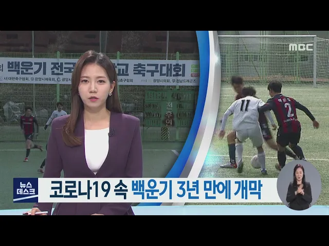 ◀ANC▶ 전국 고교 축구 최강자를 가리는 백운기 전국 고교 축구대회가 오늘(15) 개막했습니다. 코로나19 상황 속에서 3년 만에 개최돼 기대감도 더 큽니다. 김주희 기자가 보도합니다. ◀END▶ ◀VCR▶ 광양시 광양읍 공설운동장 내 축구전용구장 다시 찾아온 한파 속 매서운 칼바람에도 선수들이 한치 양보없는 치열한...