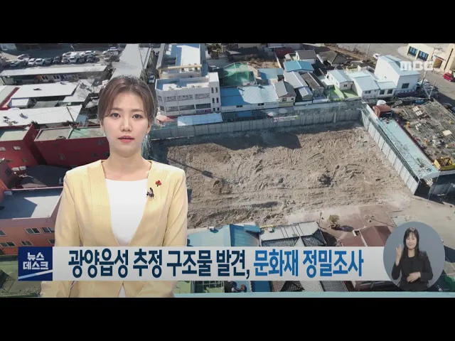 ◀ANC▶ 오래 전 광양읍 일대에는 조선시대에 축조된 광양읍성이 있었다고 전해지고 있지만, 지금은 흔적이 거의 사라져 찾아볼 수 없습니다. 최근 광양읍의 한 공사 현장에서 광양읍성으로 추정되는 구조물이 발견돼 광양읍성과 관련한 정밀 발굴조사에 들어갔습니다. 강서영 기자입니다. ◀VCR▶ 건물이 모두 철거된 채...
