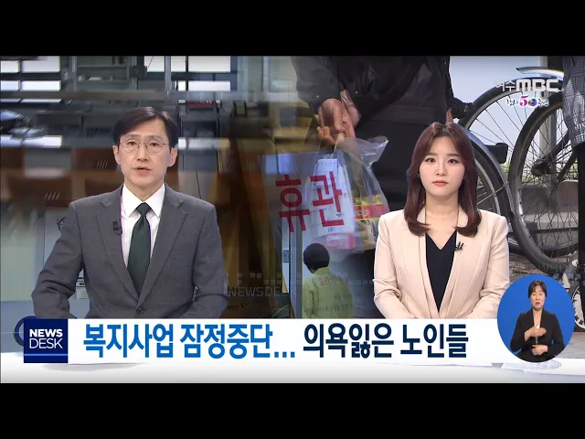 ◀ANC▶ 코로나 19 사태로 지역 노인 복지사업은 그야말로 개점 휴업상태입니다. 여기에 노인 일자리도 큰 폭으로 줄면서 생활고에 시달리는 노인들의 고충이 이만저만이 아닙니다. 김종수 기자가 보도합니다. ◀VCR▶ 광양시의 한 노인복지관. 코로나 19 여파로 휴관이 결정된지 어느덧 한 달이 다 돼 갑니다. 매일 최...