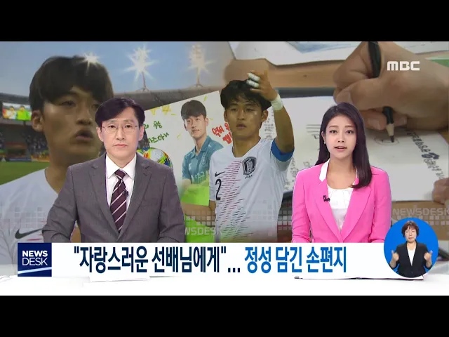 ◀ANC▶ 20세 이하 청소년 국가대표팀 선수들이 한국 축구의 역사를 다시 쓰고 있습니다. 역대 최초로 결승전까지 올랐는데, 자랑스러운 우리 한국 대표팀의 주장이 바로 광양 출신의 황태현 선수입니다. 어제(14) 황태현 선수의 모교에서는 후배들이 간절한 마음으로 손편지를 쓰며 황태현 선수를 응원했습니다. 조희원 ...