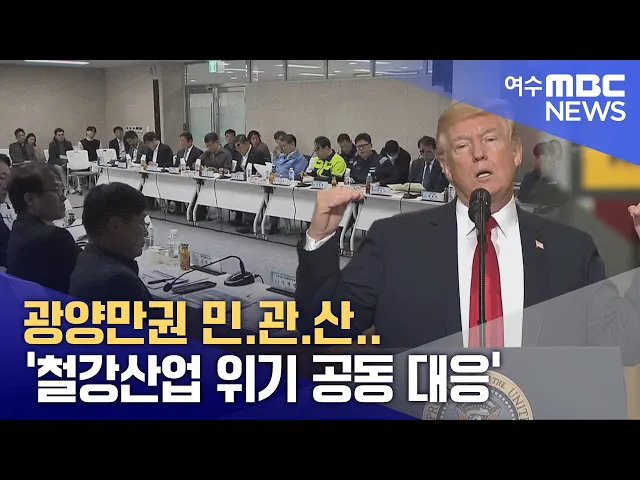 ◀ 앵 커 ▶트럼프 2기 관세 정책이 시행되면서 철강업계를 포함해광양 지역 산업계도 비상입니다.민관산이 공동 대응을 위한 협의체를 구성하고 대응 방안 마련에 상호 적극 협력하기로 했습니다.김주희 기자가 보도합니다.◀ END ▶◀ 리포트 ▶미국 트럼프 행정부의 관세 폭풍이 현실화하고 있습니다.특히, 철강 산업을 주력 ...