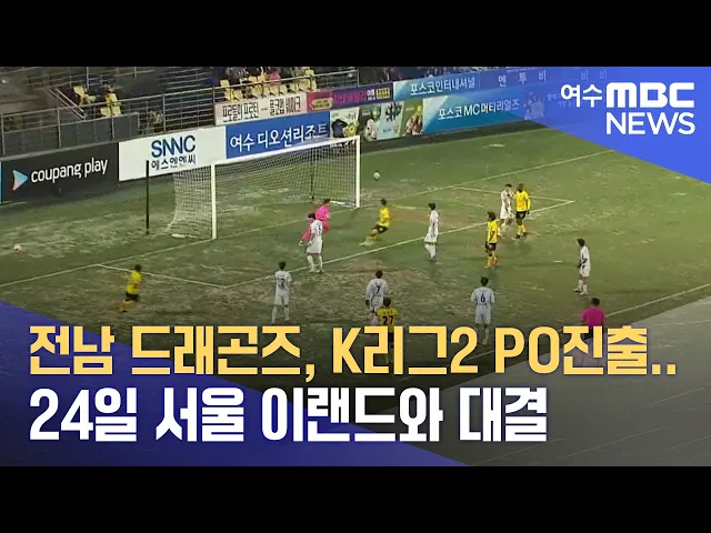 전남 드래곤즈가 오는 24일 서울 이랜드와 K리그2 플레이오프전을 가집니다전남 드래곤즈는 어제(21) 광양축구전용구장에서 열린 부산 아이파크와 K리그2 준플레이오프 경기에서 0대 0으로 비기면서,무승부로 경기가 종료되면 상위팀이 승자가 되는 규정에 따라 K리그2 플레이오프에 진출했습니다.전남은 오는 24일 서울 목...