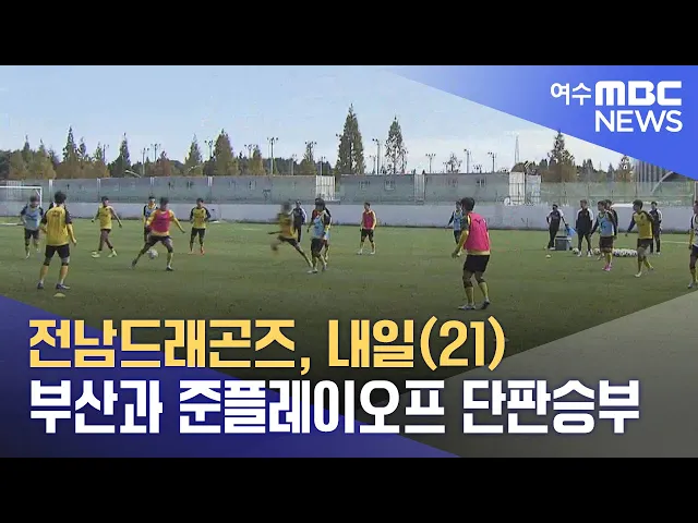 1부 리그 승격에 도전하는전남드래곤즈가 부산아이파크와 맞붙습니다.전남은 내일(21) 오후 7시광양축구전용구장에서 리그 5위 부산을 불러들여,K리그2 준플레이오프 경기에 나섭니다.준플레이오프는단판으로 치러지며90분 경기 후 무승부가 되면,정규라운드 순위 상위 팀인 전남이3위 서울이랜드와 플레이오프를 치릅니다....