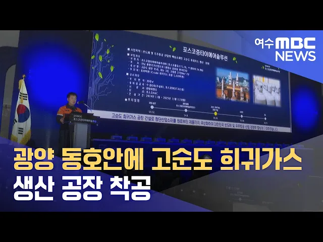 광양 동호안에고순도 희귀가스 생산 공장이 들어섭니다.광양시와 포스코는 오늘(5)광양국가산단 동호안 사업 현장에서포스코중타이에어솔루션 착공식을 개최했습니다.해당 시설은 광양제철소에서 나오는희귀가스를 분리·정제한 뒤반도체, 우주산업 소재에 쓰이는고순도 희귀가스를 생산하는 공장으로내년 말 가동이 목표입...