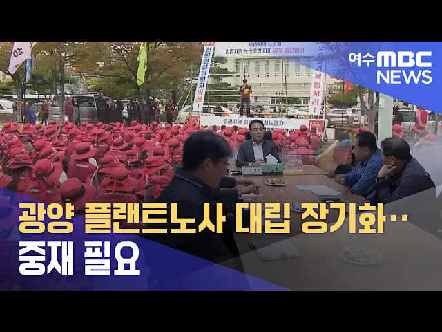 ◀ 앵 커 ▶광양제철산단 공사 현장에서일하는 플랜트건설 노동자와 사측이7개월째 대립하고 있습니다.노조가 노조원을 징계하고이를 사측에 보고하라는 조항을 두고양측이 입장 차를 좁히지 못하고 있습니다.유민호 기자입니다.◀ 리포트 ▶서울 포스코센터 본관.광양 플랜트건설노조가건물 진입을 시도합니다.직원과 몸싸움이...