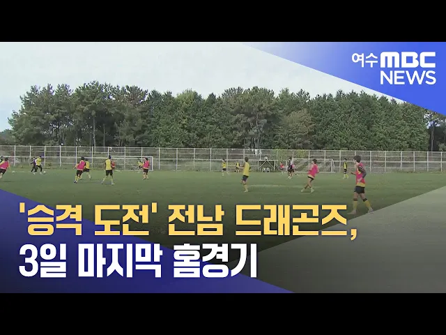 1부 리그 승격에 도전하는전남 드래곤즈가리그 마지막 홈경기를 치릅니다.전남은 다음 달 3일 (오는 3일)오후 2시 광양축구전용구장에서충북청주FC를 불러 들여 K리그2 38라운드 경기에 나섭니다.현재 리그 5위인 전남은두 경기를 남겨둔 가운데많은 승점을 확보해서 더 높은 순위로 승강 플레이오프 진출을 노리겠다고 밝...