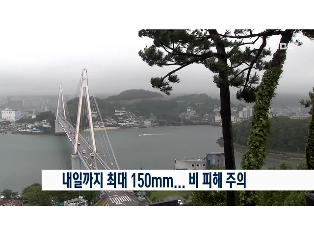 북상하는 장마전선의 영향으로내일(2)까지 전남동부지역에는최대 150mm의 많은 비가 내릴 것으로 전망됩니다. 전남 대부분 지역에 호우주의보가,여수 등에는 강풍주의보가 내려진 가운데,저녁 7시 반을 기준으로광양 백운산 76.5, 순천 55.5,여수 초도 55mm의 강우량을 기록하고 있습니다. 내일(2)까지 내륙지역에는 50~100...