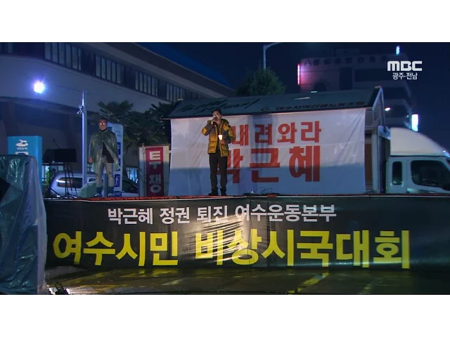 박근혜 정권 퇴진을 촉구하는 전국적인 집회에 맞춰지역에서도 촛불집회가 이어졌습니다.정권퇴진여수본부는 오늘 흥국체육관 앞에서화섬연맹 등 노동단체와 시민 2천 5백여 명이 참석한 가운데 도보행진과 촛불집회를 열고최순실 국정농단 규탄과 박근혜 정권 퇴진을 촉구하며지속적인 투쟁을 이어갈 계획입니다.또 지역...
