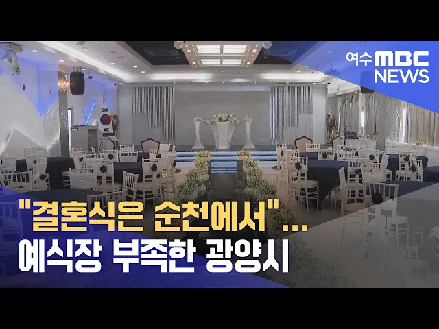◀ 앵 커 ▶광양시는 4명 중 4명이 청년일 만큼전남에서 가장 젊은 도시지만예식장은 턱없이 부족합니다.대부분이 다른 지역에서 결혼식을 올리고 있고,4년 전부터 추진돼 온 예식장 건립 사업은진척을 못 내고 중단될 위기에 놓였습니다.김단비 기자입니다.◀ 리포트 ▶광양시 중동의 한 예식장입니다.꽃 장식과 함께테이블, ...