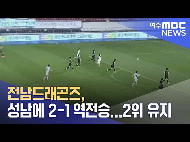 프로축구 전남드래곤즈가극적인 역전 결승골로성남FC를 2 대 1로 꺾었습니다.전남은 어제(23) 성남 탄천종합운동장에서 열린원정 경기에서전반에 성남에 선제골을 내줬지만후반 노건우의 동점골과후반 추가시간에 나온 하남의 역전골로결국 승리를 거뒀습니다.이로써 전남은 한 경기를 덜 치른 선두 FC안양을다시 승점 2점 ...