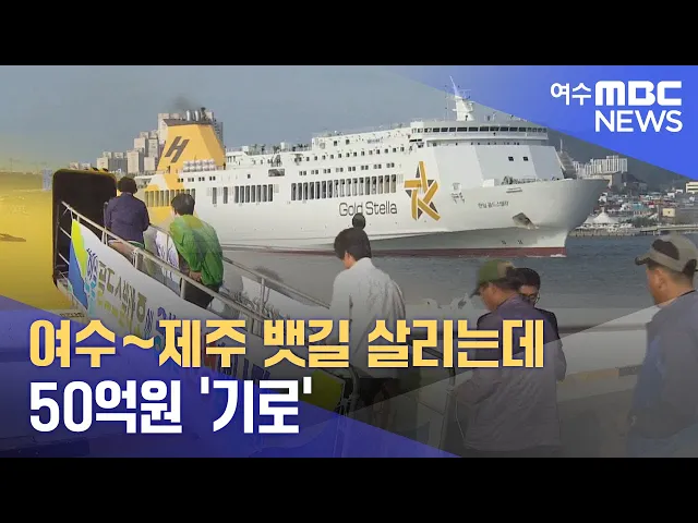 ◀ 앵 커 ▶여수와 제주를 오가는 뱃길이중단될 위기에 처하자 여수시와 정치권이 대책 마련에 나섰습니다. 최근 선사 측이적자의 일부인 50억 원을 여수시가 보전해 주면운항을 계속하겠다고 밝혔는데, 여수시는 재정 부담으로 어렵다는 입장입니다.최황지 기자의 보도입니다.◀ 리포트 ▶적자 누적으로 운항 중단이 예고됐던 ...