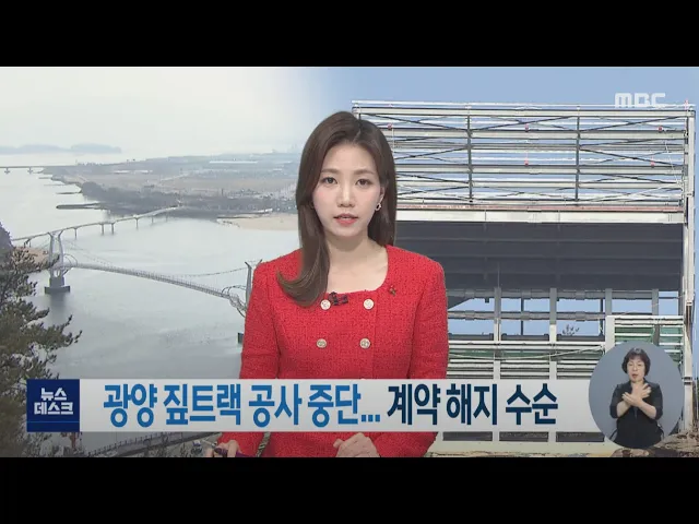 ◀ANC▶감사원이 광양시 망덕산에서 배알도 간 공중하강체험시설 사업의 계약 관련 업무가 부적정했다는 결과를 최근 내놨는데요. 광양시가 사업을 중단하고 사실상 계약 해지 수순에 들어갔습니다. 김주희 기자가 보도합니다. ◀END▶◀VCR▶광양 망덕산에서 배알도 간 공중하강체험시설 공사 현장입니다. 광양 섬진강 ...