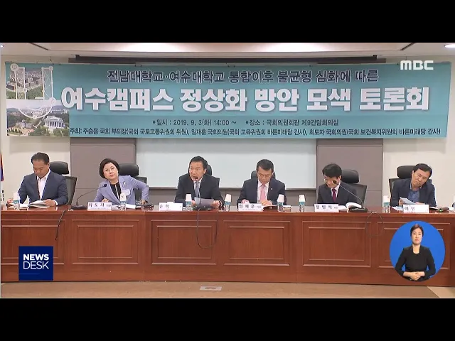 ◀ANC▶여수대학교가 전남대 여수캠퍼스로 통합된 지 14년이 지났습니다. 하지만 통합 이후, 학생수가 감소하자 지역민들은 여수캠퍼스와 광주 본캠의 불균형 발전을 꾸준히 지적해왔는데요, 이런 상황에서 여수캠퍼스 활성화 방안을모색하는 토론회가 오늘(3) 국회에서 열렸습니다. 조희원 기자입니다. ◀END▶지난 200...