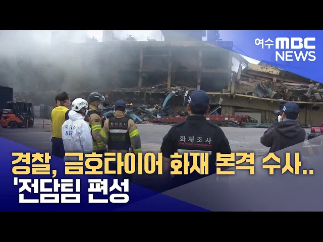 광주경찰청이 금호타이어 광주공장 화재와 관련해 전담팀을 편성하고, 본격적인 수사에 착수했습니다.수사관 36명으로 구성된 전담팀은우선 화재 원인과 회사 측의 초기 대응이적절했는지 따져보기 위해소방 시설 등의 안전 관리 실태, 관련 법령 준수 여부 등을 확인할 수 있는 자료를 확보해 수사를 진행중입니다.경찰은 ...