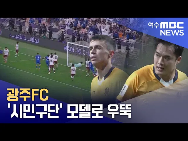 ◀ 앵 커 ▶프로축구 광주 Fc가아시아 축구 무대 8강에서 탈락했지만'시민 구단'의 한 모델로 평가되고 있습니다.기업 구단과는 비교할 수 없을 정도로열악한 재정에도 의미있는 성과를 냈기 때문인데,'성적과 흥행' 두 마리 토끼를 잡기 위해선여전히 갈 길이 멀다는 지적도 있습니다.한신구 기자의 보도입니다.◀ 리포트 ▶아...