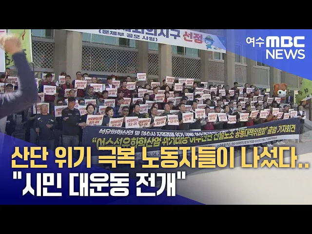 ◀ 앵 커 ▶여수산단의 불황이 길어지면서산단 업체 중심 축인노동자들의 생계도 흔들리고 있습니다.노동계가 산단 위기 극복을 위해공동 행동에 나선 가운데 정부와 기업의 대응이 주목됩니다.최황지 기자입니다.◀ 리포트 ▶플랜트, 토목, 화학섬유, 화물 분야노동자들이 한자리에 모였습니다.지역의 미래가 여수산단에 있는...