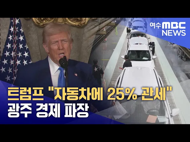 ◀ 앵 커 ▶미국 트럼프 대통령이수입 자동차에 25% 정도의 관세를 부과하겠다고 예고했습니다.이 예고가 현실화하면 대미 자동차 수출 비중이 높은광주로서는 큰 타격을 받을 수밖에 없습니다.윤근수 기자◀ 리포트 ▶자동차 관세를 부과하는 시기는4월 2일로 이미 예고했었습니다.관세를 얼마나 매길지가초미의 관심이었는데...