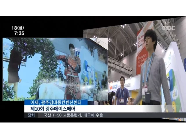 (앵커)최근 문화콘텐츠의 흐름을한 눈에 볼 수 있는 광주에이스페어가 개막했습니다. 올해는 3D 스캐닝과 드론 등 최첨단 기술을 활용한 문화콘텐츠를 사고 파는 커다란 장이 열렸습니다. 김인정 기자입니다.(기자)화면 앞으로 걸어들어가자갑옷 입은 무사로 변신하고,공룡 그림에 태블릿 PC를 가져다대니 알을 깨고 튀어...