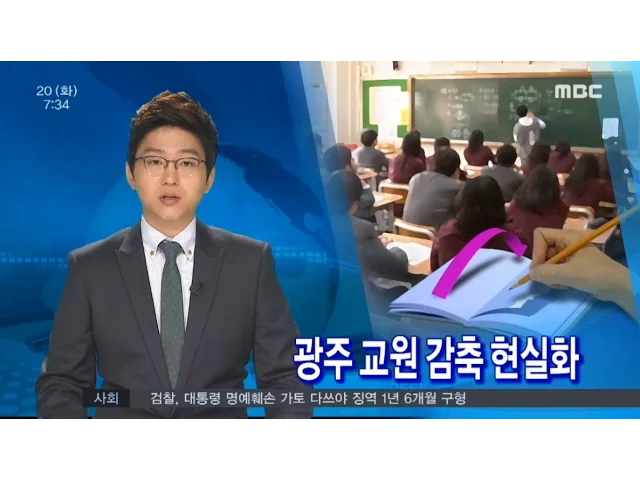(앵커)학령 인구 감소에 따라교원 정원 감축이 -현실화되고 있습니다.당장 내년부터광주지역 사립 중고등학교는정원 감축이 불가피해졌습니다.이계상 기자..(기자)광주시교육청이사립 중*고등학교에 전달한 공문입니다.감사원의 감사 결과에 따라광주지역 사립고 교원 120명을 내년부터 단계적으로 감축해야한다는 내용입...