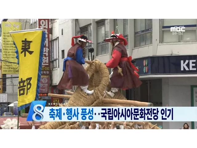 ◀ANC▶ 11월의 마지막 주말을 맞아 광주·전남에서는 다양한 문화 체험행사가 열렸습니다. 개관후 첫 주말을 맞은 아시아 문화전당에는 많은 인파가 몰려 체험인파로 붐볐습니다. 신광하 기자가 보도합니다. ◀VCR▶ 동부와 서부를 상징하는 고가 힘껏 충돌하며 승부를 겨룹니다. 시간이 지날수록 ...