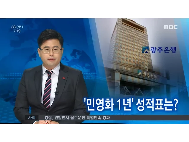 (앵커)광주은행이 민영화한 지 1년이 지났습니다.효율성과 수익을 앞세우는 공격적인 경영전략은 비교적 성공적이라는평가를 받고 있습니다.반면에 지역은행으로서의 정체성은 약화됐다는 지적도 나오고 있습니다.조현성 기자(기자)"광주은행이 지금부터 10년 20년 아니면 30년 후에도 살 수 있게 만든 뒤, 그것을 지역은...