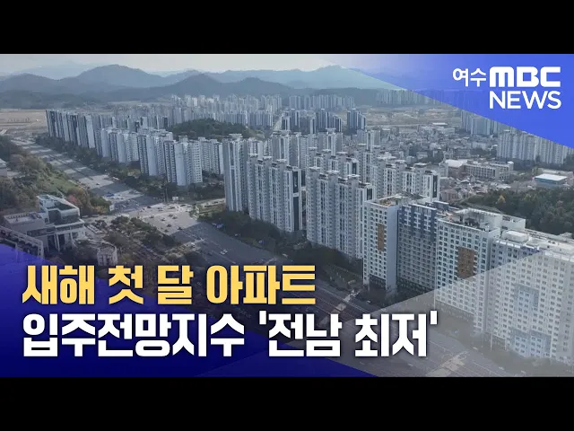 경기침체 우려 등으로전국 아파트 입주전망지수가 2년 만에 최저치를 기록한 가운데,전남이 전국에서도 가장 낮은 것으로나타났습니다.주택산업연구원이 발표한 2025년 1월 아파트 입주전망지수에 따르면전남은 전월대비 54.1포인트 급락한 37.5로전국에서 가장 낮았고, 광주와 경북 등이 그 뒤를 이었습니다.입주전망지수...