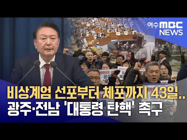 ◀ 앵 커 ▶12.3 비상계엄 사태가 발생한 지 43일 만에윤석열 대통령이 체포됐습니다. 그간 윤 대통령은 거센 탄핵 여론에도 굴하지 않고 수사기관 체포에 강력히 저항해 왔지만,이제 새로운 국면을 맞게 됐습니다.5.18을 겪어낸 광주를 충격에 빠뜨린 비상계엄부터 체포까지 과정을김초롱 기자가 정리했습니다. ◀ 리포트 ▶지...