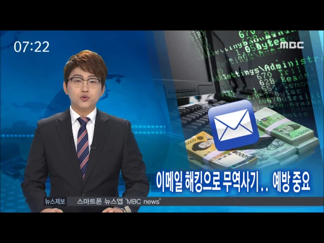 (앵커)한 중소기업이 최근중국업체와 무역 거래를 하는 도중 수천만 원을 날리는 피해를 봤습니다.중국업체의 계좌인 줄 알고 거래대금을 넣었는데, 알고보니 해커에 의해 계좌번호가 바뀌어 있었던 겁니다.송정근 기자입니다.(기자)중국 기업으로부터고무 원자재를 수입해 와가전제품을 생산하고 있는 전남의 한 중소기업....