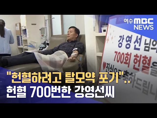 ◀ 앵 커 ▶광주에서 헌혈을 700번 넘게 한 시민이 있어 화제입니다.이 정도로 헌혈을 하려면40년 동안 한달에 한번씩 빠지지 않고 헌혈을 해야 합니다.헌혈을 하기 위해 탈모약도 포기할 정도라고 하는데 이렇게 헌혈에 진심인 이유는 무엇일까요?천홍희 기자가 만나고 왔습니다.◀ 리포트 ▶침대에 누워 피를 뽑고 있는 강영...