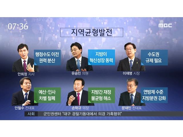 차기 대권 도전자들의 리더십과 정책을 비교해 보는 시간입니다. 오늘은 지역균형발전에 대한 의지와 광주.전남 지역을 위한 정책을 비교해 봅니다. 박수인 기자 ◀VCR▶ 지역균형발전을 강화하고 헌법에 지방분권을 명시하자는 데 대선 주자들의 이견은 없었습니다. 안희정 충남지사는 청와대와 국회를 세종...