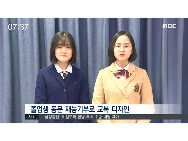 (앵커)학창시절 맘에 들지않는 교복을어쩔 수 없이 입어야했던 분들 많으실텐데요.광주시내 한 여고에서학생과 졸업생들이 직접 교복을 만들어 화제가 되고 있습니다.이계상 기자..(기자)광주의 한 여자고등학교에서신입생 입학식이 진행되고 있습니다.파란색 교복을 입은 재학생들과는 달리신입생들은 산뜻한 빛깔의 새 교...