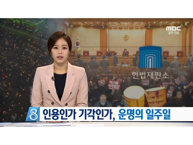 (앵커)박근혜 대통령 탄핵 여부가 이번주 금요일 혹은 늦어도 다음주 월요일 안으로 결정됩니다.대한민국의 운명이 걸려 있다고 해도 과언이 아닌 일주일인데 시민들이나 정치권 모두 헌재가 내릴 결과에 촉각을 곤두세우고 있습니다.김철원 기자입니다.(기자)지난해 말부터 매주 토요일마다 열여덟 차례에 걸쳐 시국촛불집...