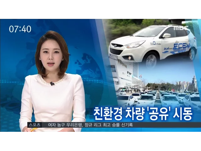 (앵커)잠깐 차량을 빌려쓰는 공유경제 서비스,'카 셰어링'이 인기를 끌고 있습니다.이런 흐름에 발맞춰 수소나 전기차를 활용한 차량 공유 서비스가전국 최초로 광주에서 시작됐습니다.이계상 기자..(기자)광주시청 앞 광장에서친환경 차량들이 줄지어 주행을 시작합니다.매연을 뿜어내지않고 공해 발생이 없는수소차와 전...