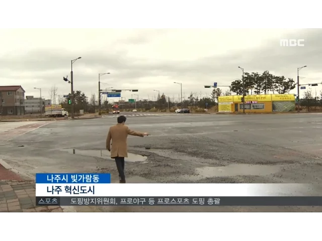 (앵커)건설된 지 2년이 채 안된 혁신도시의 도로들이 누더기로 변해가고있습니다. 수백 곳에서 하자가 생기면서운전자와 보행자의 안전을 위협하고 있는데요..무엇이 문제인지송정근 기자가 현장 취재했습니다 (기자)나주 혁신도시의 한 도로가누더기로 변했습니다 차도가 갈라지고 도로가 침하되면서 빗물이 고였습니다. ...