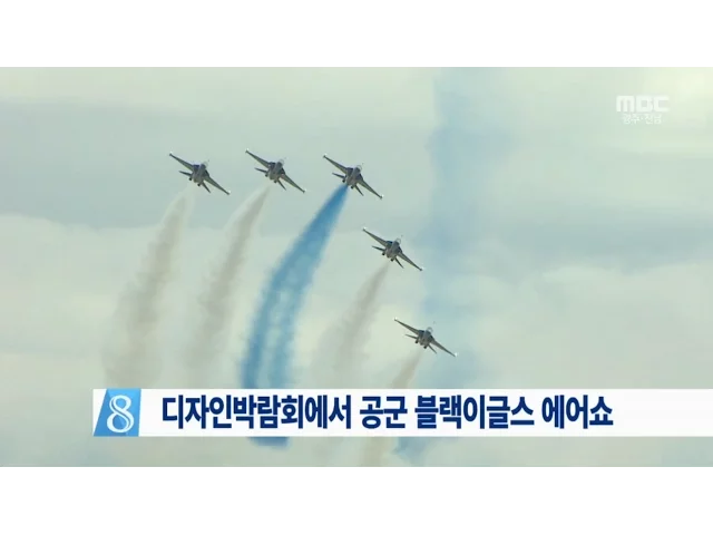 오는 5월 15일 나주에서 개막하는세계친환경디자인박람회에서 공군 특수비행팀블랙이글스가 에어쇼를 펼칩니다. 블랙이글스는 개막일인 오는 15일오전 11시부터 25분 동안 박람회장 상공에서다섯 가지 색을 뿜는 8개의 전투기로화려한 에어쇼를 펼친다고 밝혔습니다. 박람회에서는 이와 함께퍼펫가든 판타지 뮤지컬과 난...