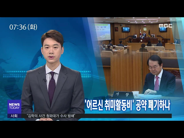 ◀ANC▶ 목포시는 최근 현 목포시장 후보시절 공약 이행을 두고 논란이 많습니다. 매달 '어르신 취미활동비'를 지원하겠다는 약속이 제대로 지켜지지 않고 있다는 건데 의원들이 선심성 공약이라며 반발하고 나섰습니다. 김윤 기자가 보도합니다. ◀END▶ 김종식 목포시장이 후보시절 공약한 '어르신 취미활동비 지원'. ...