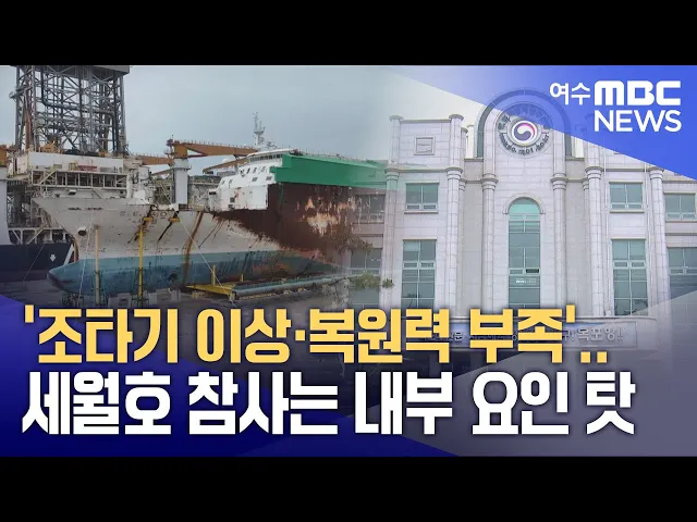 ◀ 앵 커 ▶304명을 숨지게 한 세월호 참사,원인을 둘러싼 '진상 규명'과 '책임자 처벌'이 큰 과제로 남았는데요. 목포지방해양안전심판원이세월호는 조타기 이상과 복원력 부족 등선체 자체의 요인으로 전복됐다고 결론을 내렸습니다.참사가 발생한 지 10년 7개월 만입니다.김규희 기자가 보도합니다.◀ 리포트 ▶목포지방해양...