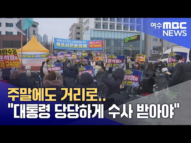 ◀ 앵 커 ▶내란 우두머리 혐의를 받는윤석열 대통령이 구속된 주말,시민들은 또다시 거리로 나왔습니다.시민들은 구속에 이어파면까지 빠르게 이어져야 한다면서도구속영장 등 대통령 수사에 계속반대 입장을 보였던 여당도 책임져야 한다고 목소리를 높였습니다.최다훈 기자입니다.◀ 리포트 ▶윤석열 대통령이관저로 돌아가...
