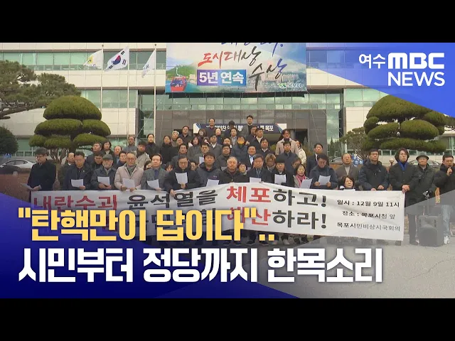 ◀ 앵 커 ▶윤석열 대통령의 대국민 담화에 지역 정치권도 일제히 반발했습니다.전남도의회는 윤석열 즉시 체포와 탄핵을 촉구하는 긴급 결의안이 채택했습니다.서일영 기자가 취재했습니다. ◀ 리포트 ▶윤석열 대통령의 즉시 체포와 탄핵 촉구하는 결의안이 전남도의회 본회의를 통과했습니다.도의원들은윤석열 대통령의 담화...