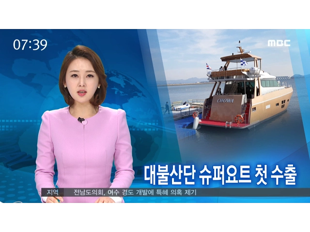 ◀ANC▶ 대불산단의 한 조선기자재업체가 10년 간의 투자끝에 슈퍼요트 건조에 성공해 수출계약을 체결했습니다. 슈퍼요트 등 초대형 요트 산업은 세계적인 시장 규모를 형성하고 있어, 조선산업 다각화에도 도움이 될 전망입니다 신광하 기자가 보도합니다. ◀VCR▶ 황금색 도장을 한 대형 요트가 ...