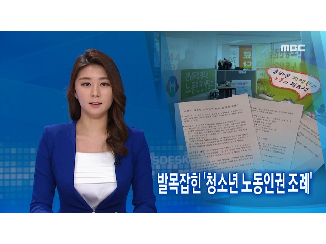◀ANC▶최저임금을 받지 못하거나근로계약서도 작성하지 않는청소년들의 열악한 노동 환경,비단 어제, 오늘 일이 아니죠.이들을 보호하기 위해순천시가 조례 제정을 추진하고 있는데,일부 단체가 반대하면서 차질을 빚고 있습니다. 어떤 내용인지 문형철 기자가 취재했습니다. ◀VCR▶지난달 순천시...