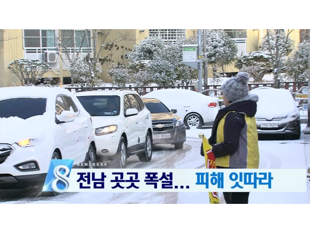 ◀ANC▶ 전남 곳곳에 대설주의보가 내려진 가운데 대부분 지역에서 많은 눈이 내렸습니다. 높은 파도에 바닷길은 막혔고,빙판길 사고도 잇따랐습니다. 김진선 기자가 보도합니다. ◀END▶ ◀VCR▶ 밤사이 많은 눈이 내린 목포의 한 초등학교 앞. 마스크와 모자로 꽁꽁 싸맨 어린이들이 ...