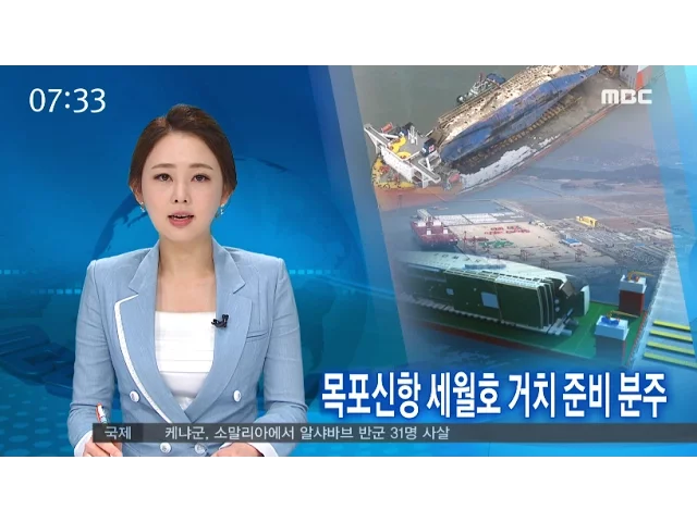 ◀ANC▶인양된 세월호는 오늘(31일) 마침내 목포신항에 도착했습니다.세월호 인양에서부터 목포까지 오는 여정을 김 윤 기자가 정리했습니다. ◀END▶ 세월호 시험인양이 시작된 것은물살이 약해지는 소조기에 들어선지난 22일 오전 10시. 침몰된 지점에서 1미터 가량 들어올리는시험인양이 성공하...