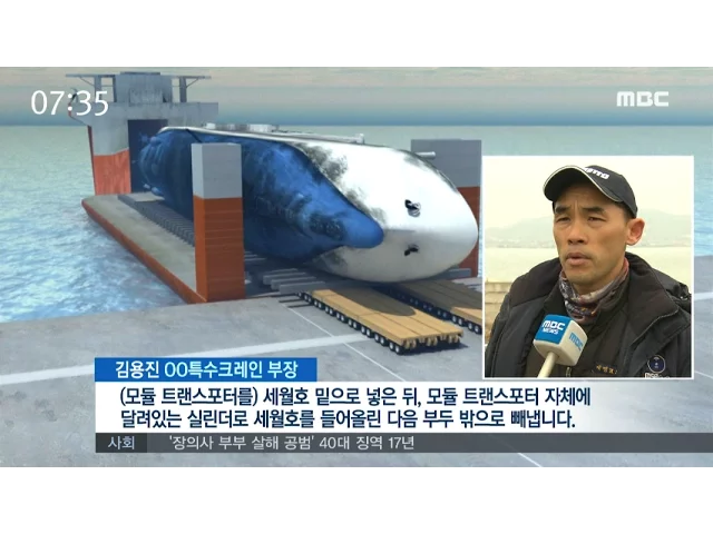 ◀ANC▶ 세월호가 목포신항에 도착하면 어떻게 부두로 옮겨지는지 관심이 집중되고 있습니다.세월호 육상 거치 과정에 투입될 똑같은 형태의 모듈 트렌스포터를 통해 자세히 설명해 드리겠습니다. 김양훈 기자가 단독 취재했습니다. ◀END▶ 세월호가 목포신항에 도착하면 반잠수식 선박에서 부두로...