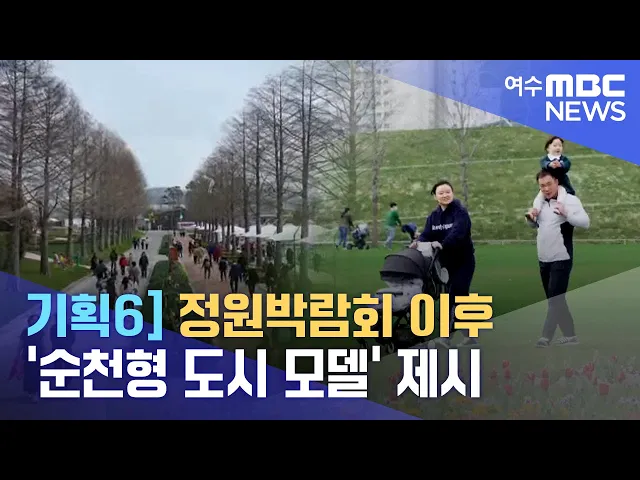 ◀ANC▶ 박AC) 순천시는 이번 정원박람회를 계기로 기후변화와 지방소멸의 위기에 대응할 수 있는 새로운 도시 모델을 제시하겠다는 구상입니다. 허AC) 순천만 습지와 동천 하구를 기점으로 정원과 숲, 광장이 대자보 교통 체계로 이어지는 생활인구형 생태수도의 비전이 순천시가 제시하는 큰 그림입니다. 최우식 기자가 ...