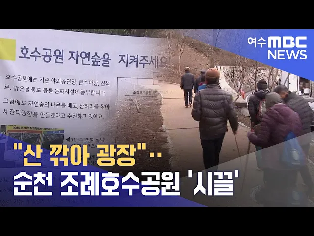◀ 앵 커 ▶순천시가 조례호수공원 옆호수산을 깎아, 언덕과 잔디광장을 조성하는계획을 추진하고 있습니다. 주변 인구가 늘어나면서녹지 공간을 더 확보하겠다는 건데,어렵게 가꾼 숲과 생태를 해치는 행위라며주민들이 반발하고 있습니다. 유민호 기자입니다. ◀ 리포트 ▶순천 조례호수공원 옆 호수산. 높고 깊은 산은 아니...