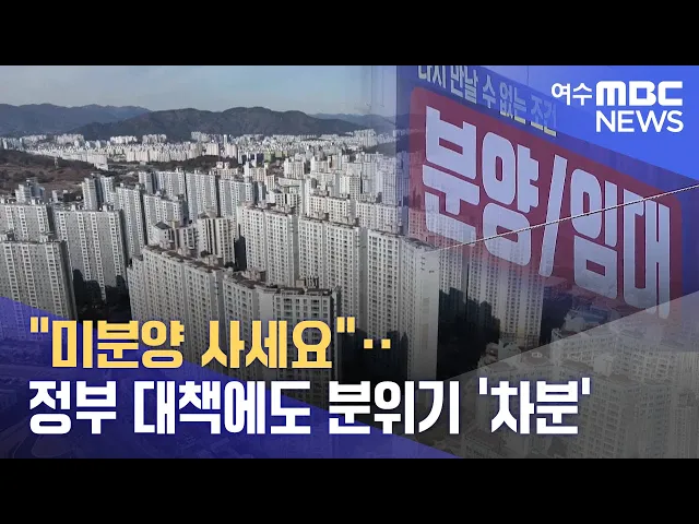 ◀ 앵 커 ▶정부가 지난주 가라앉은주택 시장에 활기를 불어넣으려 위해부동산 대책을 발표했는데요.지방에서 미분양 주택을 구매하면세금을 더 부과하지 않는 등 여러 방안이 포함됐지만,온기가 곧바로 퍼지지 않는 분위기입니다. 유민호 기자입니다. ◀ 리포트 ▶여수 원도심에 들어선한 주상복합아파트입니다.이미 공사를 마...